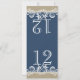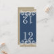 Design azul marinho semelhante a renda com guirlanda do mar, altere o número para cada mesa e encomende individualmente para que os números das mesas sejam coordenados com os convites. Dobrado ao meio, torna-se um cartão de número de mesa de 4" x 4 5/8".