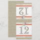 A aparência de número de mesa impresso em burlap e renda para fazer você mesmo. Altere o número para cada mesa e encomende individualmente para que os números da mesa sejam coordenados com os convites. Dobrado ao meio, forma um cartão de número de mesa de 4" x 4 5/8".