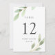 Este Número de Mesa de Casamento apresenta folhas pintadas em aquarela em vários tons de verde.