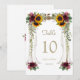 Encantador design de casamento de outono com dossel floral com dossel de madeira aquarela com buquês de girassóis, rosas Burgundy e folhagens. Use a ferramenta Personalizar para adicionar suas informações. Para itens correspondentes, visite minha Coleção de Casamento Botânico com Dossel.