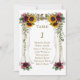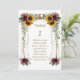Desenho de casamento com dossel floral de outono elegante com dossel de madeira de aquarela com buquês de girassóis, rosas bordô e folhagens. Use a ferramenta Personalizar para adicionar suas informações. Para itens correspondentes, visite minha Coleção de Casamento Botânico com Dossel.