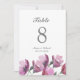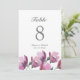 Número de mesa de casamento com pintura aquarela rosa floral roxo. O cartão apresenta um design de pintura aquarela de flores silvestres rosadas e folhagens. Este design também apresenta fontes modernas e elegantes para o layout do texto. O design se repete no verso. Parte de uma coleção de casamento. Verifique minha loja para ver o conjunto completo de casamento para este design!
