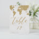 Convites Número de Mesa de Casamento no Mapa Mundial Dourad