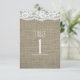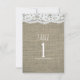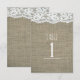 Cartão de Número de Mesa de Casamento Rústico Simples em Arpillera e Renda