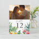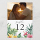Convites Número de Mesa de Foto de Flores Tropicais em Aqua