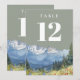 Convites Número de Mesa Montanha em Aquarela Verde Sage Mod