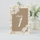 Convites Número de Mesa Rústico em Renda Floral e Sacaria