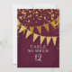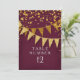 Números de mesa para Recepções, festas formais, Eventos Empresariais e Chás de Noiva. Esbelto. Moderno. Chique. Glamour discreto - com faixas de bandeira cintilantes em dois tons de brilho dourado com confetes cintilantes caindo em vários tamanhos e tons de dourado. Estrelas cintilantes em explosão de estrelas destacam o brilho. Um layout de texto de tipografia contemporâneo que não é nada tradicional. É simples e curto. Diz aos seus convidados: "Estamos dando uma festa e será a festa da vida!" Para a noiva e o noivo elegantes, mas não tradicionais. CORES: Vinho tinto escuro profundo, vermelho carmesim e dourado, brilhos dourados. Especialmente adequado para casamentos de outono ou inverno, fest