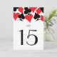 Os naipes de cartas vermelhos e pretos tradicionais no branco são uma adição clássica ao conjunto de casamento Destiny para decoração de recepção. Marque suas mesas de uma maneira muito de Vegas e facilite para os convidados encontrarem um assento. Perfeito para um casamento em Las Vegas em uma pequena capela fora da avenida principal, tudo o que você precisa é amor e uma ou duas testemunhas!
