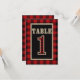 Convites Número de mesa xadrez búfalo vermelho e preto rúst
