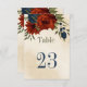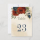 Cartão único com número de tabela, contendo laranja romântico queimado e flores azuis marinhos e folhas verdes. PARA MAIS PRODUTOS CORRESPONDENTES, clique na coleção acima ou entre em contato comigo.
