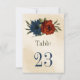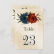 Cartão único com número de tabela, contendo laranja romântico queimado e flores azuis marinhos e folhas verdes. PARA MAIS PRODUTOS CORRESPONDENTES, clique na coleção acima ou entre em contato comigo.