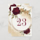 Belo cartão de número de mesa de casamento outono com marrom e flores de ouro bege com folhas verdes. São simulados os detalhes do brilho dourado. PARA MAIS PRODUTOS CORRESPONDENTES, clique na coleção acima ou entre em contato comigo