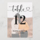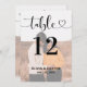 As modernas cartas de números de mesas negras e brancas (as cores podem ser modificadas) apresentam uma foto do casal com uma camada de design de tipografia na moda preta que inclui um roteiro de caligrafia e um sotaque cardíaco. O texto personalizado simples e elegante que pode ser personalizado com o número da tabela e os nomes de convidados sentados nessa mesa específica. Personalize e adicione cada placa de número de tabela individual necessária (1, 2, 3... e assim por diante) ao seu carrinho de compro.
