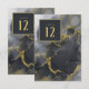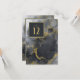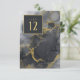 Seus sonhos estão finalmente se tornando realidade e este design abstrato de tinta alcoólica que flui define o tom perfeito para o maravilhoso casamento que você sempre imaginou. Em tons de carvão a preto, acentuados com ouro brilhante, o cartão de número da mesa de casamento mostrado aqui fornece uma modelo para adicionar facilmente um número de tabela, suas iniciais e data de casamento. Procure ID988 para ver outras peças neste conjunto de casamento coordenado.