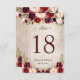 Convites Número de Tabela Floral Russo Woodgrain Burgundy