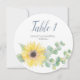 Esta placa de número de eucalipto e girassol é perfeita para casamentos temáticos rústicos e jardins. A design apresenta uma fenda de folhas verdes e girassol sobre fundo branco. Acima está seu número de tabela e nomes em uma bela tipografia caligráfica moderna. O design inclui a minha própria arte pintada de aquarela. Para ver mais visite o VG Invites em www.zazzle.com/vginvites