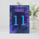 Ajude seus convidados a encontrar sua mesa atribuída com este número de tabela baixável de nova festa divertida. Matizes azuis roxas e lacrimejantes com o fundo foliar tropical escuro dão ao cartão um aspecto brilhante com uma vibração aquática ou subaquática. Às mesas é atribuído um número para manter a sua celebração organizada. Perfeito para 16 anos, festa adolescente ou qualquer celebração brilhante!