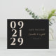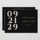 Faça seu anúncio de noivado se destacar com este moderno e elegante Contemporâneo Salve a design de Data. Apresentando tipografia numérica em marfim sobre fundo preto elegante, com um toque de ouro destacando os nomes dos casais para um toque luxuoso. O design mínimo e contemporâneo na frente garante que seus convidados sejam informados sobre seu próximo casamento, enquanto a parte traseira oferece espaço para detalhes adicionais e um conveniente código QR. Isso para salvar o convite de data é perfeito para casais que buscam uma maneira na moda e sofisticada de anunciar seu dia especial.