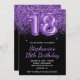 Crie o seu aniversário moderno de 18 anos com a arte digital falsa de balões de folhas. Envie uma mensagem ao criador se precisar de um convite para uma idade diferente criada. O fundo de vidro feminino apresenta gráficos decorativos faux brilhantes roxos roxos roxos roxos roxos sobre uma cor preta sólida. O brilho luxuoso, o brilho e os efeitos de texto em folha são criados por elementos artísticos que impressão gostam de uma foto. Você pode personalizar a caligrafia caprichosa e modernos todos os estilos de fonte e cores de bonés.