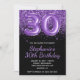 Crie o seu próprio aniversário de 30 anos moderno com a arte digital do balão de folha falsa. Envie uma mensagem ao criador se precisar de um convite para uma idade diferente criada. O fundo de vidro feminino apresenta gráficos decorativos faux brilhantes roxos roxos roxos roxos roxos sobre uma cor preta sólida. O brilho luxuoso, o brilho e os efeitos de texto em folha são criados por elementos artísticos que impressão gostam de uma foto. Você pode personalizar a caligrafia caprichosa e modernos todos os estilos de fonte e cores de bonés.