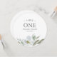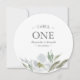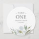 O cartão do número da mesa da aguarela elegante em um formato redondo original moldam seus detalhes com uma beira das folhas cinzentas da aguarela e floral botânicos em máscaras pálidas, legal dos cinzas e em verdes. A pia batismal é ajustada na tipografia moderna de Sans Serif e de roteiro. Aperfeiçoe para casamentos do primavera, do verão, do outono da queda, os rústicos ou do jardim do tema. Para ver mais design como esta visita VG convida em www.zazzle.com/vginvites