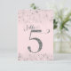 Convites Números de Mesa Brilho Rosa Bege Prata Número 5