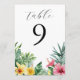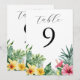Convites Números de mesa com Flores Tropicais de Aquarela e