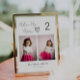 Eleve seu casamento, festa de noivado ou evento especial com nosso Modelo de Número de Mesa com Foto de Bebê Minimalista. Este é um sinal editável e imprimível,