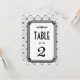 Estes números de mesa apresentam uma paleta de cores branca e preta, uma moldura geométrica, padrões geométricos e outros detalhes estilísticos todos inspirados no Art Déco e nos loucos anos vinte. Você pode personalizar os campos de texto de amostra ao seu gosto.