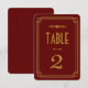 Estes números de mesa apresentam uma paleta de cores burgundy e dourado, uma moldura geométrica e outros detalhes estilísticos, todos inspirados no Art Déco e nos loucos anos 20. Você pode personalizar os campos de texto de amostra ao seu gosto.