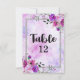 Números de mesa de casamento com moldura de glitter prateado falso e flores aquáticas com confetes e fonte de pincelada moderna! ~ Confira minha loja para ver todo o conjunto de casamento deste design!
