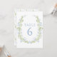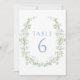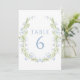 Elegantemente eterno, esses números das mesas de casamento apresentam delicadas flores azuis pastel de cor d'água e uma coroa esbranquiçada.