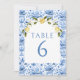 Convites Números de mesa de casamento de limão azulejos azu