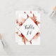Beleza Rústica Flores em Moldura Aquarela Design Boêmio de Outono com Flores Pintadas à Mão, Penas e muitas folhas e folhagens coloridas laranja, ferrugem, vermelho, Borgonha, Marsala e pêssego. Com elementos de linha desenhados à mão, fontes manuscritas espiraladas e moldura geométrica diamantada com brilho em folha de ouro rosa e pinceladas para números de mesa de casamento ou qualquer evento!