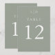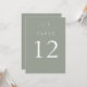 Estes números de mesa de casamento minimalistas com monograma verde sage podem ser personalizados com suas iniciais monogramadas. Projetado por Thisisnotme©