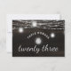 Madeira marrom-escura-escura-escura de Oak Ridge, Jars Mason cintilante e Design de Luzes de Cordas Brilhantes com fios brilhantes de luzes e frascos balançando em uma textura rica em madeira profunda com sotaques brancos. Com Fontes Modernas De Script De Tipografia. Um design de estilo de fazenda rural rústico elegante - Cartão de lugar para a Mesa de Recepção de Janto Personalizado para Recepção de Casamento. Veja meu compro para ver a suíte de casamento inteira para este design!