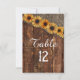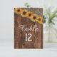 Cartões de número de mesa de casamento de girassol de madeira rústica e sacaria com fonte de pincel moderno! ~ Confira minha loja para ver o conjunto completo de casamento deste design!