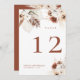 Os números de mesa de casamento são caracterizados pelo estilo boho, arte floral, cores neutras e terrosas, e bege, para criar um visual único e eclético que torna esses números de mesa uma estética natural.