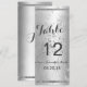 Um convite elegante e moderno com números de mesa em prata metálica com flores. Este convite de casamento luxuoso com flores prateadas é perfeito para qualquer garota glamorosa e sofisticada. Este design é perfeito para um evento de festa moderno e elegante. Personalize este design com sua própria mensagem e informações personalizadas. Todos os designs são impressos.