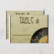 Cartões de Mesa de 2 Lados da série de casamento "Fan Elegant" são perfeitos para casamentos com tema Oriental, Eduardiano ou Art Déco. Fundo de leque em tom sobre tom, leque preto e dourado deslumbrante e efeito cintilante da impressão em papel metálico dourado certamente agradará. 3,5" x 5". Pintura digital original de Leslie Sigal Javorek. Também em Rosa Aurora e Azul Bermuda.