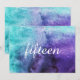 Convites Números de Mesa em Aquarela Azul sobre Roxo
