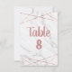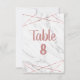 Design geométrico de linhas em ouro rosa e mármore branco com fontes manuscritas modernas Elegantes e contemporâneas cartões de número de mesa para casamento e quadro de assentos Com fonte manuscrita moderna! ~ Confira minha loja para ver toda a coleção de casamento com este design!