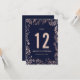 Convites Números de Mesa Florais de Rosa Dourado Azul Marin