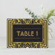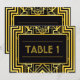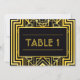 Estes números de mesa apresentam uma moldura geométrica intrincada, padrões geométricos, uma paleta de cores preta e dourada, e outros detalhes estilísticos inspirados no Art Déco e nos loucos anos vinte. Você pode personalizar os campos de texto de amostra ao seu gosto.