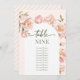 Elegante cor-de-água rosa peonias florais floridas números de mesas de casamento floridas com o quadro de assentos de nomes de convidados incluído.