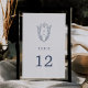 Estes números de mesa de casamento botânica branca e azul da Coleção Daphne são perfeitos para um casamento tradicional. O simples, porém clássico, design apresenta um elegante e eterno monograma da crista real com flores e verde em torno das iniciais do casal. A placa impressão na frente e atrás (lado duplo). Adicione cada número de tabela que você precisa ao seu carrinho individualmente.
