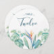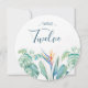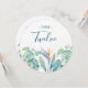 Os números das mesas de casamento tropicais chic apresentam uma borda inferior de florais de aquarelas com folhagem botânica exuberante e verde em um único cartão redondo. Personalize com o número da sua tabela no moderno script escrito à mão e na letra de sans serif tradicional. Perfeito para jardim, verão, destino ou casamentos de praia. Para ver mais designs como este, visite www.zazzle.com/vginvites