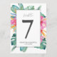 Estes cartões de números da mesa de casamento apresentam flores de aquarela tropical em tons de cor rosa e laranja múltiplos com folhas de palma. Use os campos modelo para personalizar com os números de tabela, nomes e data de casamento. Encomenda cartões impressos ou números de tabela imprimíveis. Para ver a suíte de papelaria de destino correspondente visite www.zazzle.com/dotellabelle Watercolor art e design de Victoria Grigaliunas