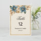 Marinho botânico azul, marfim e números florais de mesa de jardim de ouro Convite de casamento. Um simples convite botânico às flores da primavera que é perfeito para um casamento no jardim ou no exterior. Todas as designs são impressas.